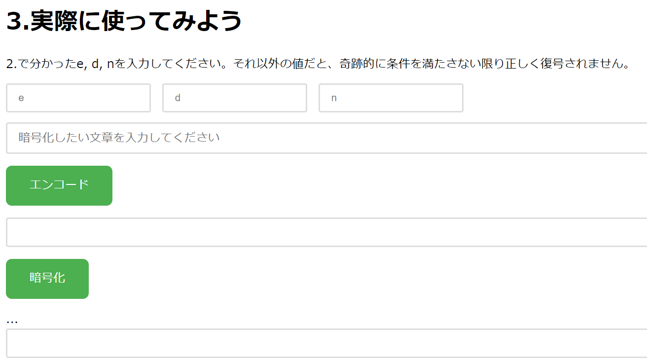 これで、RSA暗号の鍵がすべて揃いました! それでは3番に進みましょう。